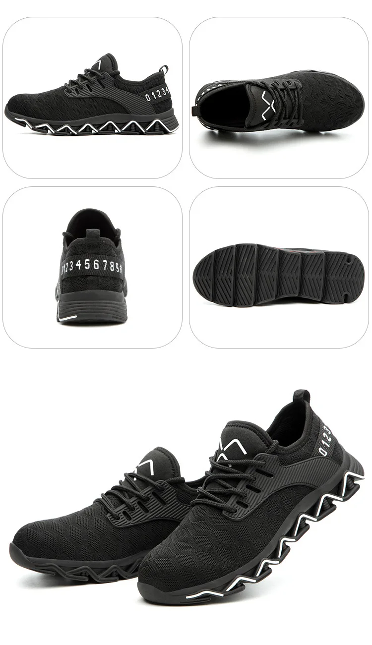 8 абсолютно преимущества: защита от ударов, прокол, супер-светильник, мягкая амортизация, противоскользящая, износостойкая. Анти-разбивает введение Введение стального носка Функция защиты от проколов Введение кевларового материала Супер-светильник Мягкая амортизирующая функция Дышащий Выберите передовой научный 3D Летающий тканый сетчатый материал Противоскользящая функция Износостойкая функция