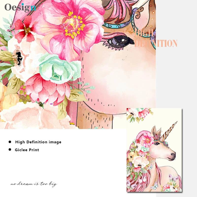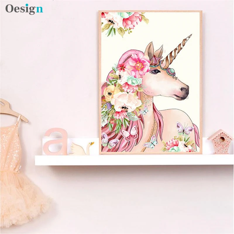 Единорог Фламинго олень искусство холст животное плакат для детской...