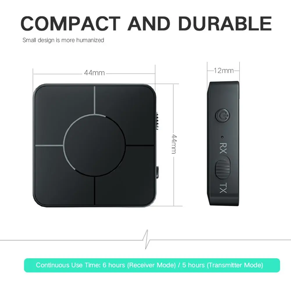 5.Портативное потоковое аудио питание: Аудио адаптер для KN326 всего 44 мм (1,73 ”) и весит всего около 18 г (0,63 унций), но имеет мощные возможности беспроводной потоковой передачи аудио. Вставьте этот передатчик и приемник в рюкзак или сумку для ноутбука и возьмите его на ходу без каких-либо усилий.