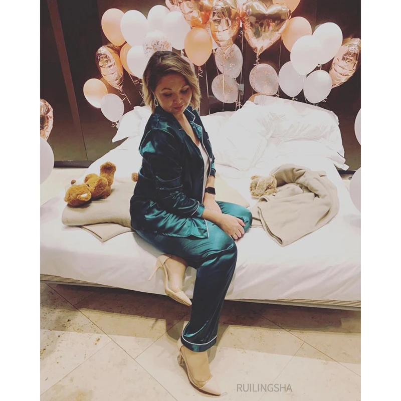 Пижамный комплект Женский Тонкий шелковый, размера плюс Пижама с отложным воротником, одежда для сна, лето