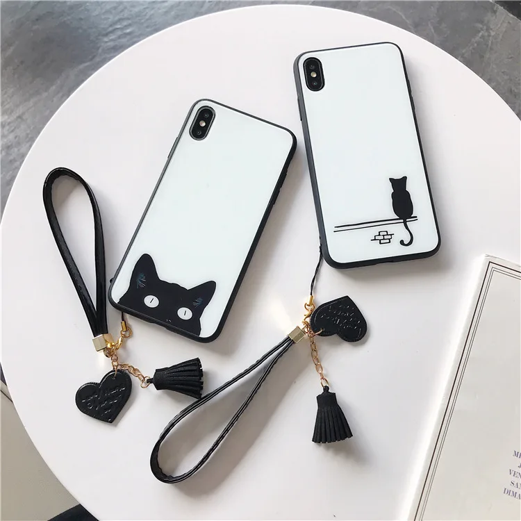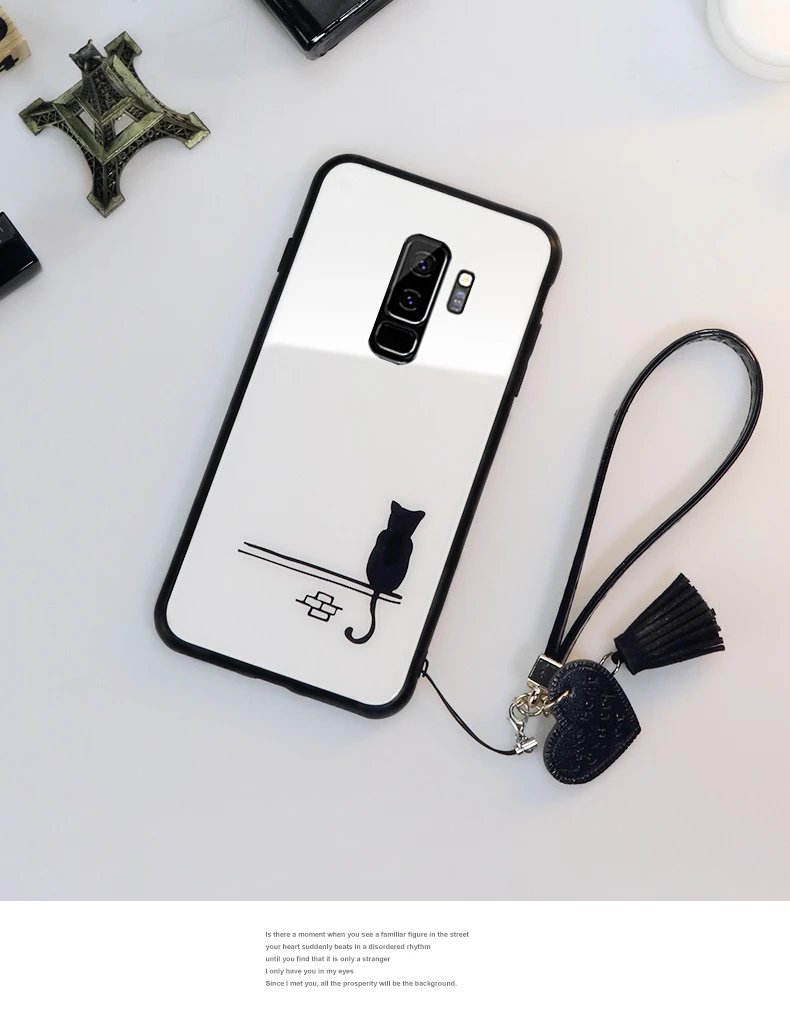 Для Samsung Galaxy s10 s10e note 8 9 M10 M20 M30 A7 A8 A9 S10 s9 s8 плюс 2018 S10E A20 A30 A50 A70 милый кот стекло корпус и ремешок