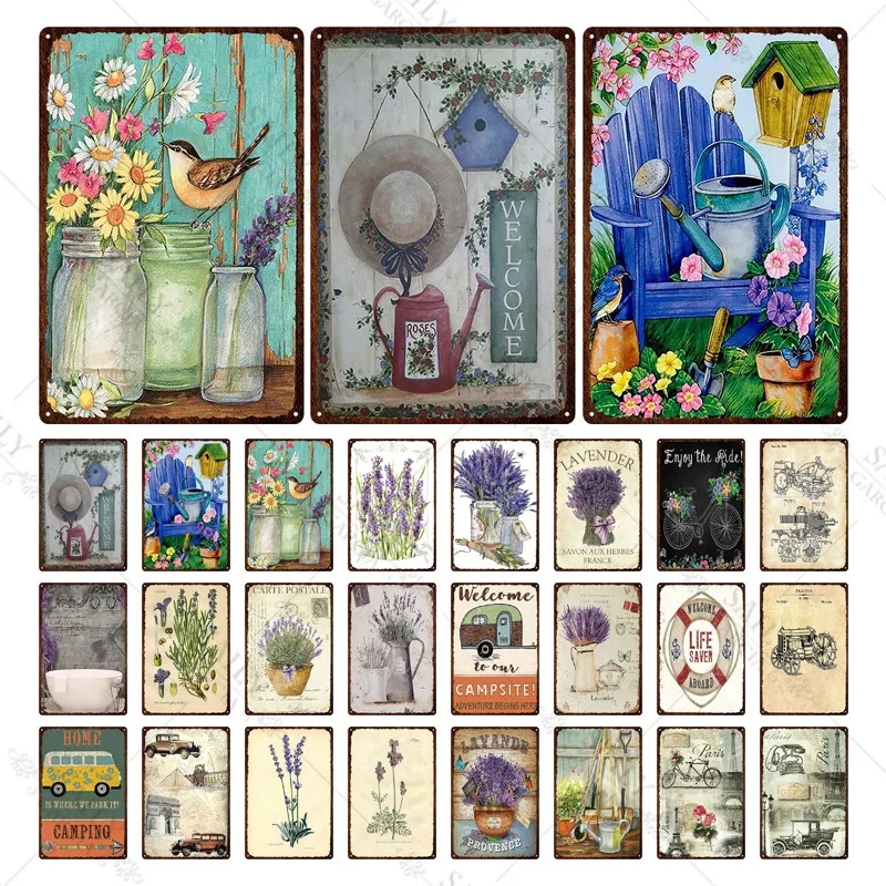 Цветы велосипед автомобиль доска Металл Винтаж Добро пожаловать Лаванда сады тарелка Ванна Ворон плакат стены паб домашнее искусство фермерский Декор