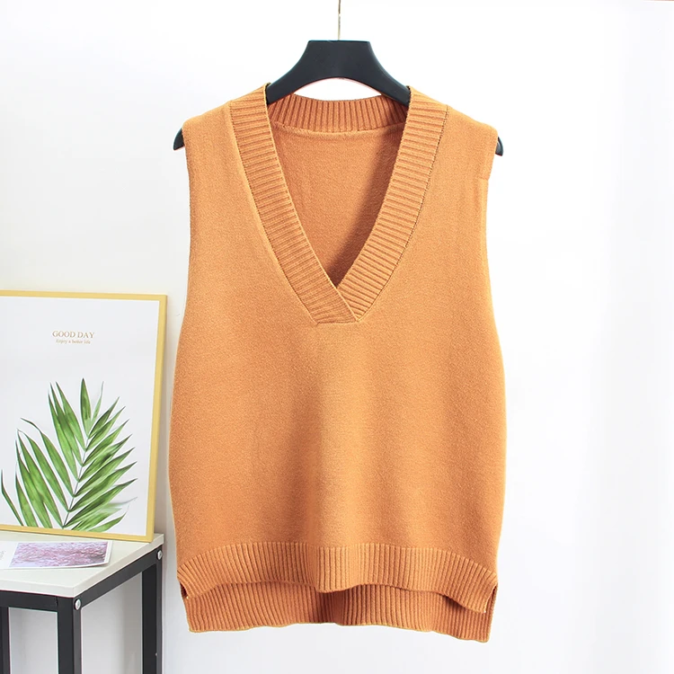 Женский трикотажный жилет без рукавов, Повседневный свитер с V-образным вырезом ярких цветов, весна-осень 2020
