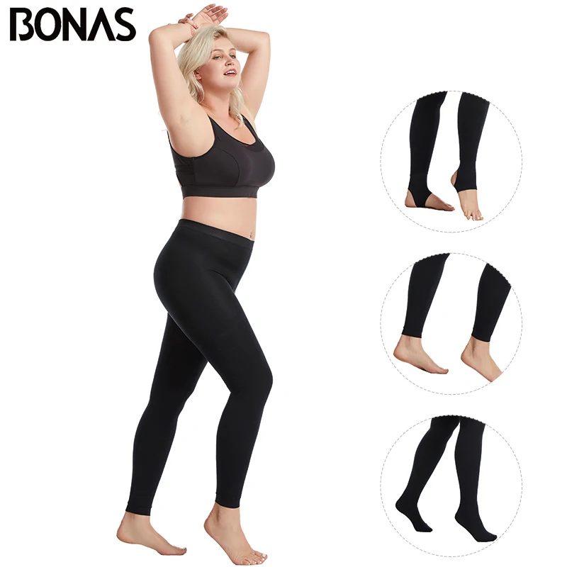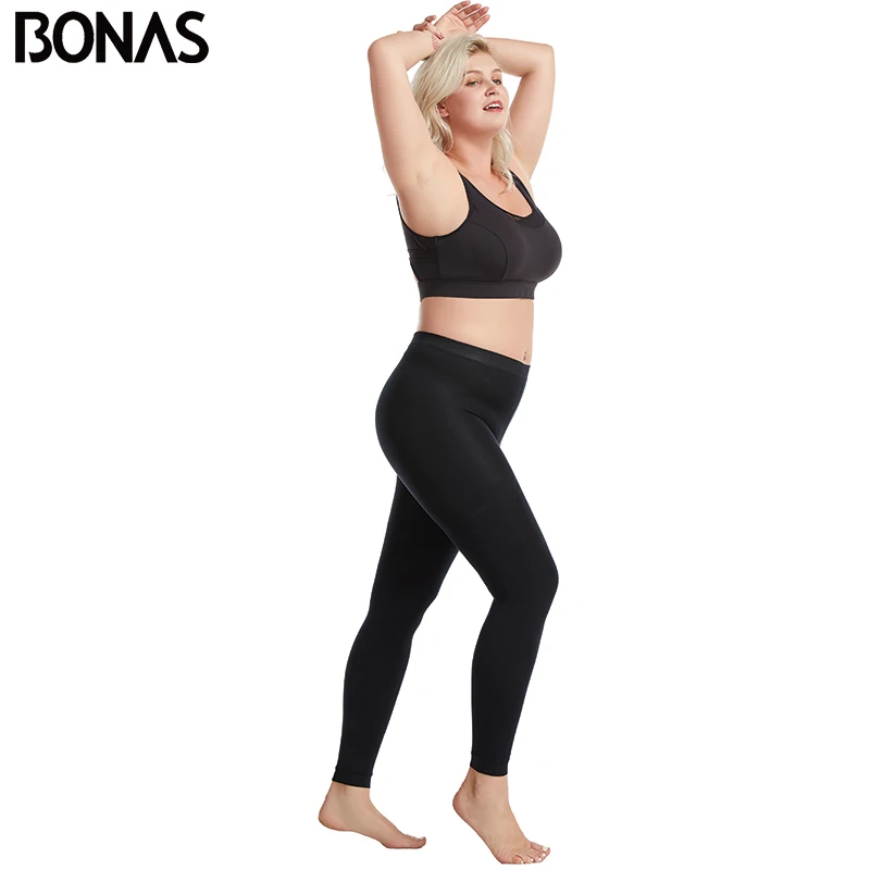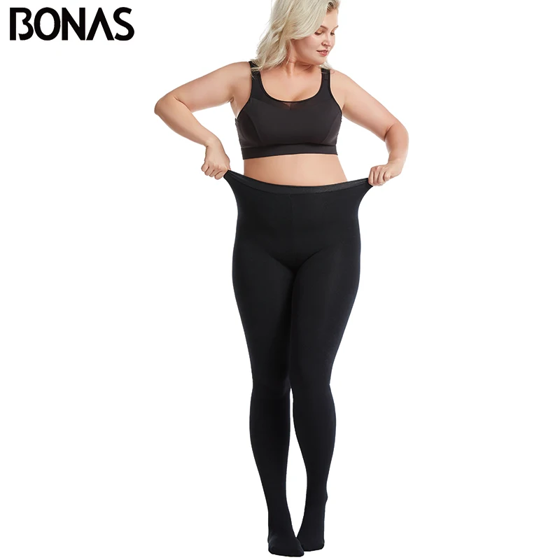Колготки женские эластичные из размера плюс полиэстера, черные
