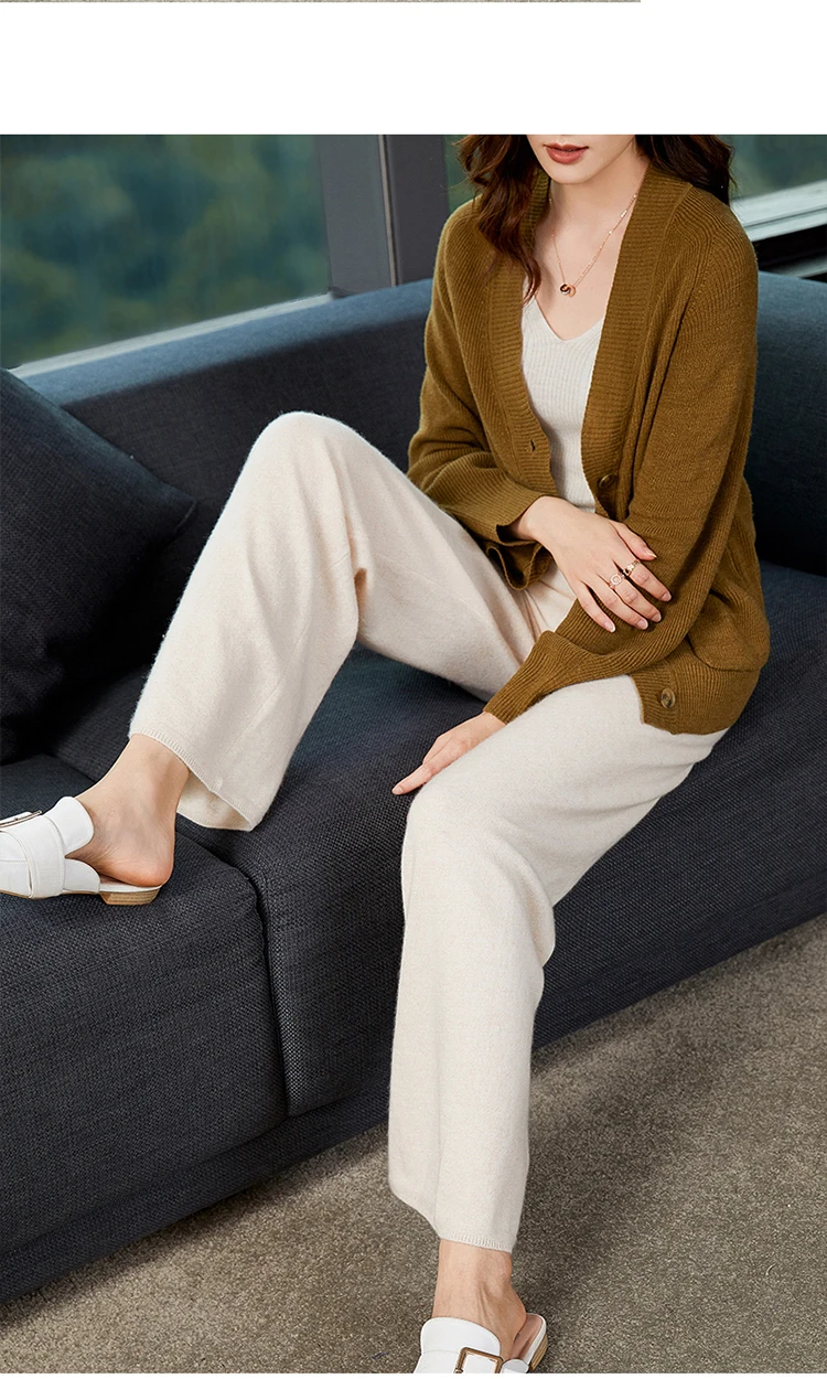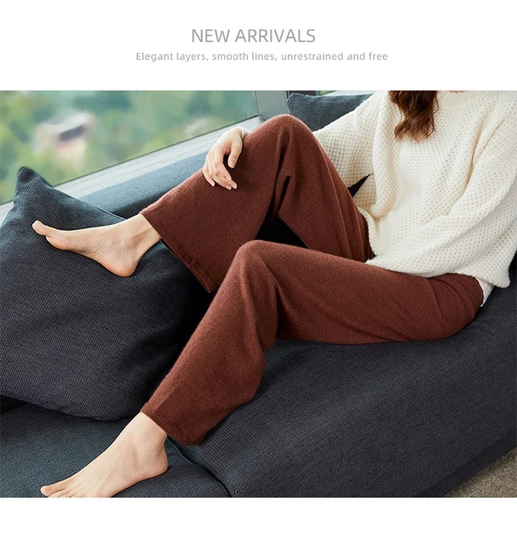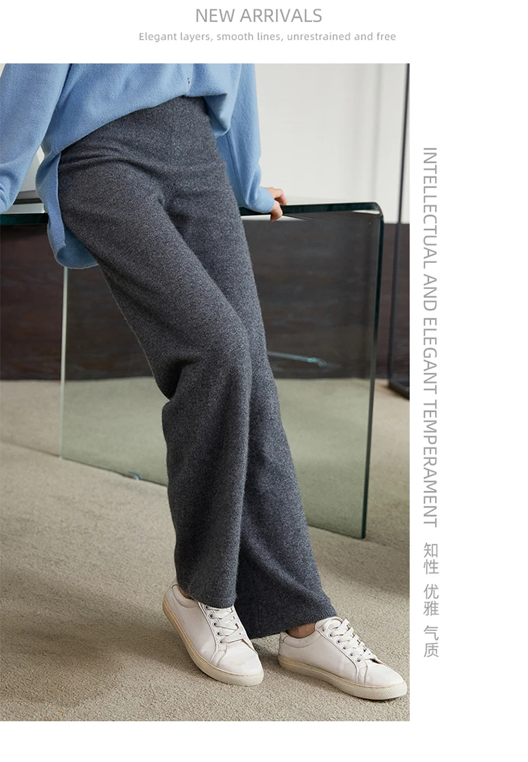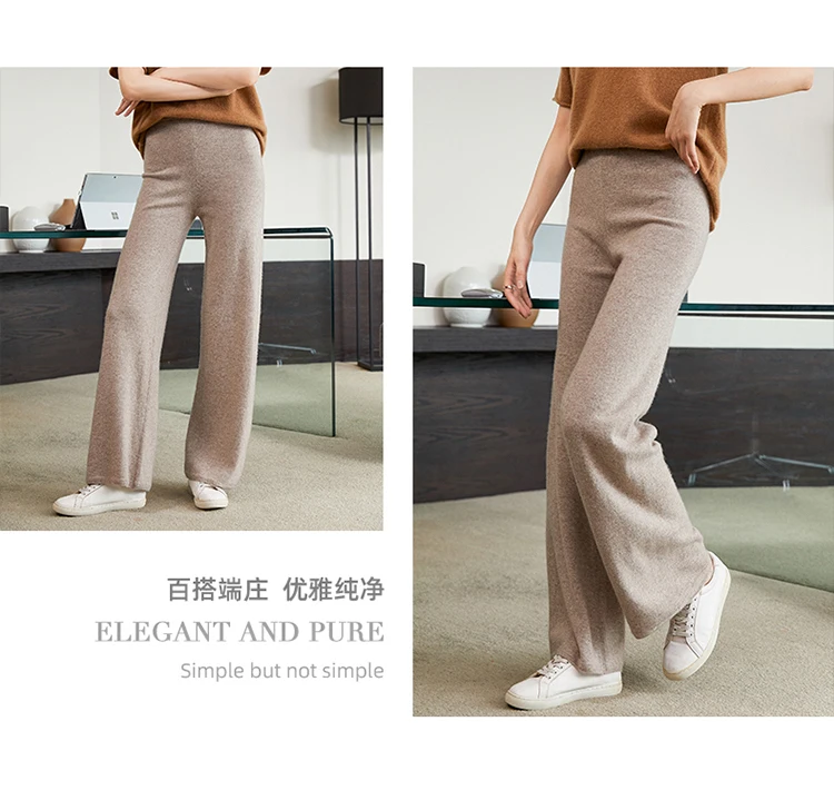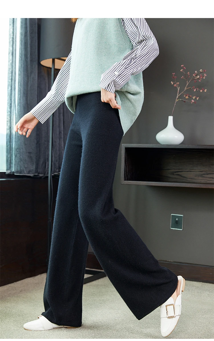 Женские брюки из 100% шерсти 2021 Новые осенне-зимние мягкие восковые удобные трикотажные брюки с высокой талией женские 6 цветов широкие брюки