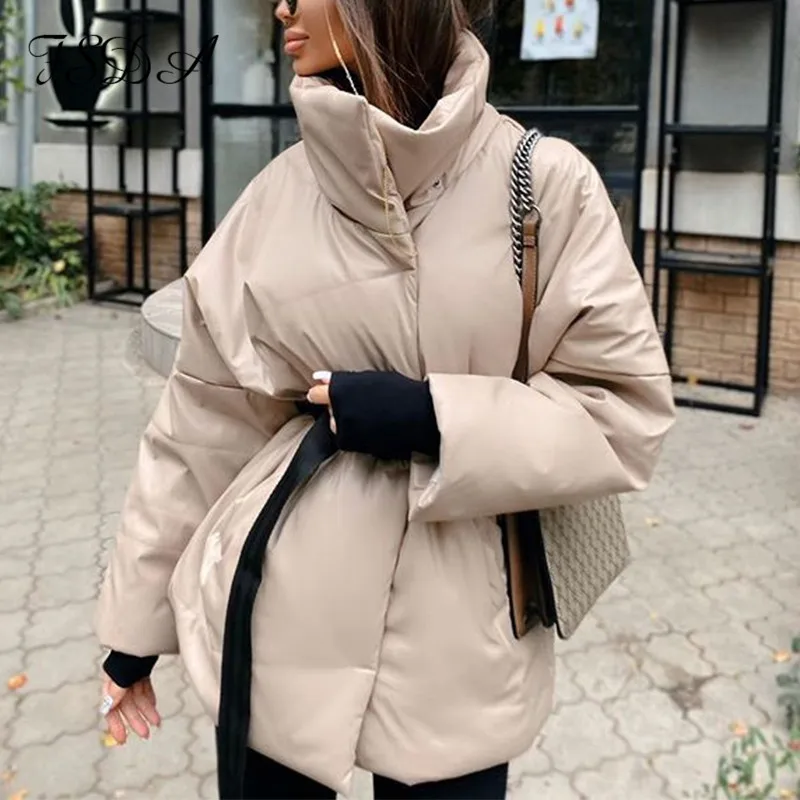 Парка женская теплая, с поясом, с карманами, цвета хаки, на осень-зиму, 2020