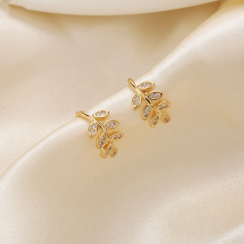 Серьги-клипсы женские, с золотыми листьями, без пирсинга, 1 шт.