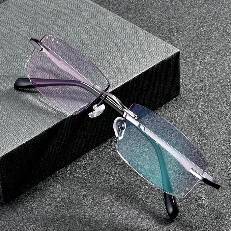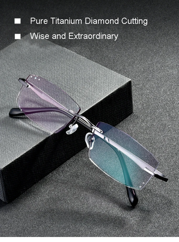 Мужские деловые алмазные обрезные линзы без оправы из чистого тита...