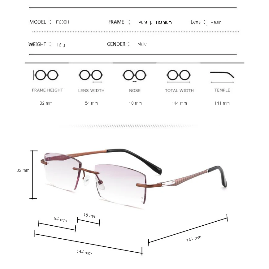 Сверхлегкий B чистый Титан очки без оправы кадров Для мужчин рецепт...