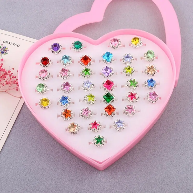 Кольцо детское регулируемое с кристаллами и звездами, 122436 шт.компл., Открытое кольцо из смолы, подарок на день рождения для девочек