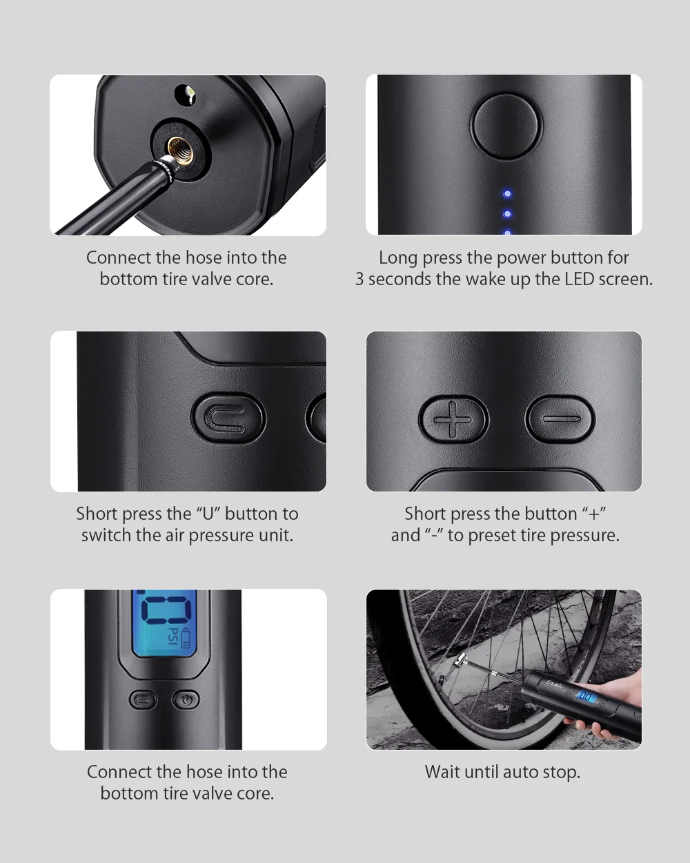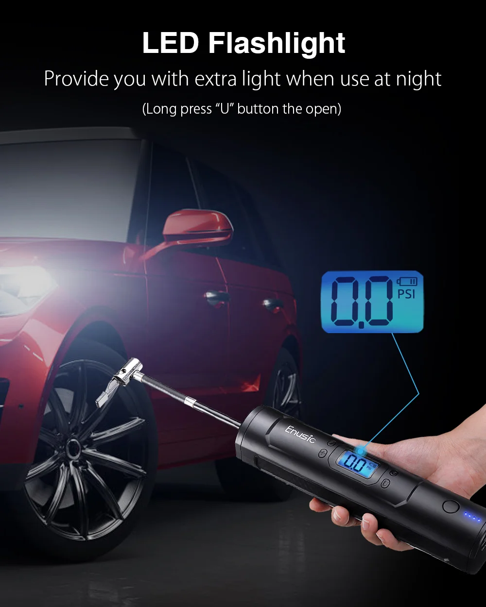 Беспроводной компрессор для шин, перезаряжаемый аккумулятор 7800 мАч, 25 лмин, внешний аккумулятор с цифровым ЖК-дисплеем светильник катором, 150psi