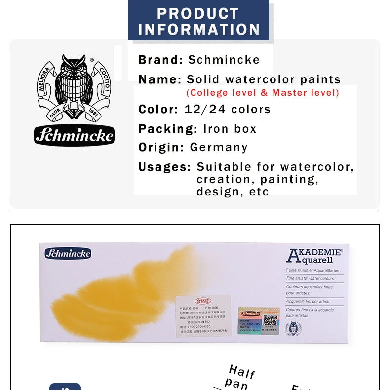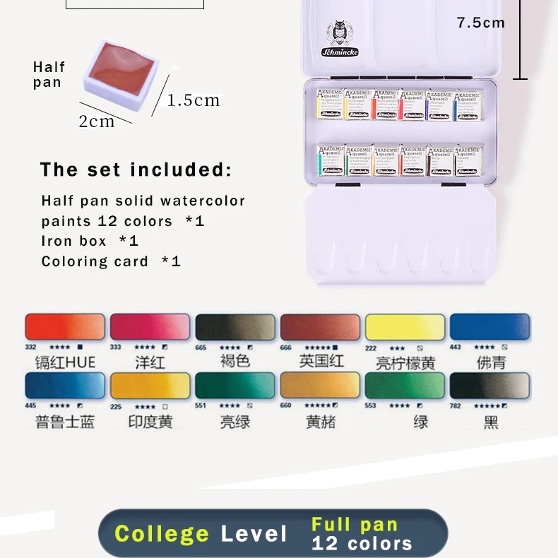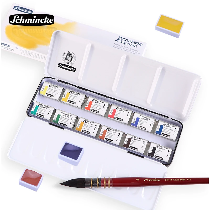 Schmincke AKADEMIE HORADAM 1224 цветов Профессиональные Твердые акварельные краскиПигменты половинаполная форма художественные Твердые акварельные краски