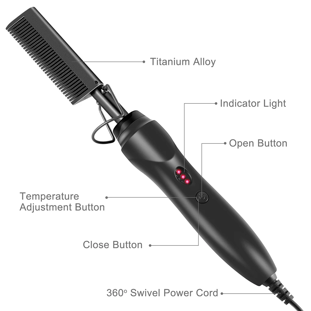 Эта прямая расческа подходит для всех типов укладки и придаст вам быстрый, гладкий и профессиональный вид.Эта прямая расческа быстро нагревается, выпрямляется быстрее всего за несколько минут.Прямая Расческа для укладки больше не вьется, и ее можно выпрямлять после каждого расчесывания.Стильная расческа защитит ваши руки от ожогов, безопасна и долговечна.Расчесывая голову, погоняйте расческу, чтобы надежно удерживать ее на месте, держа руки подальше от конфорки.