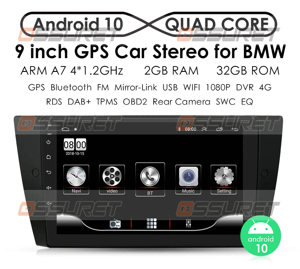Автомобильный радиоприемник, 9 дюймов, 2 Din, Android 10, четырехъядерный, GPS для Bmw 3 E90, E91, E92, E93 2006-2012, Navi, стерео, мультимедийный плеер, USB, EQ, FM, Wi-Fi