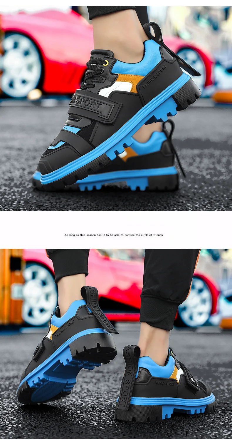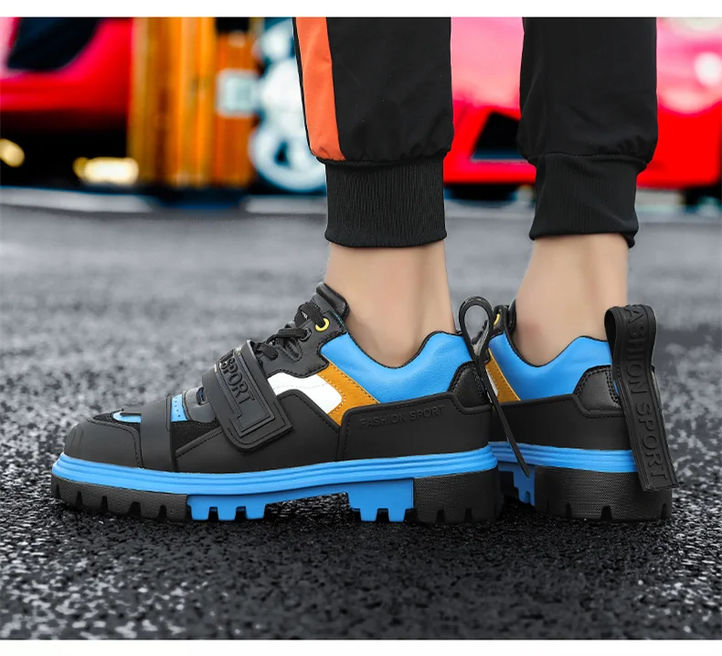 Мужские кожаные кроссовки, синие, красные, повседневные, на высокой платформе, для осени и зимы, 2021