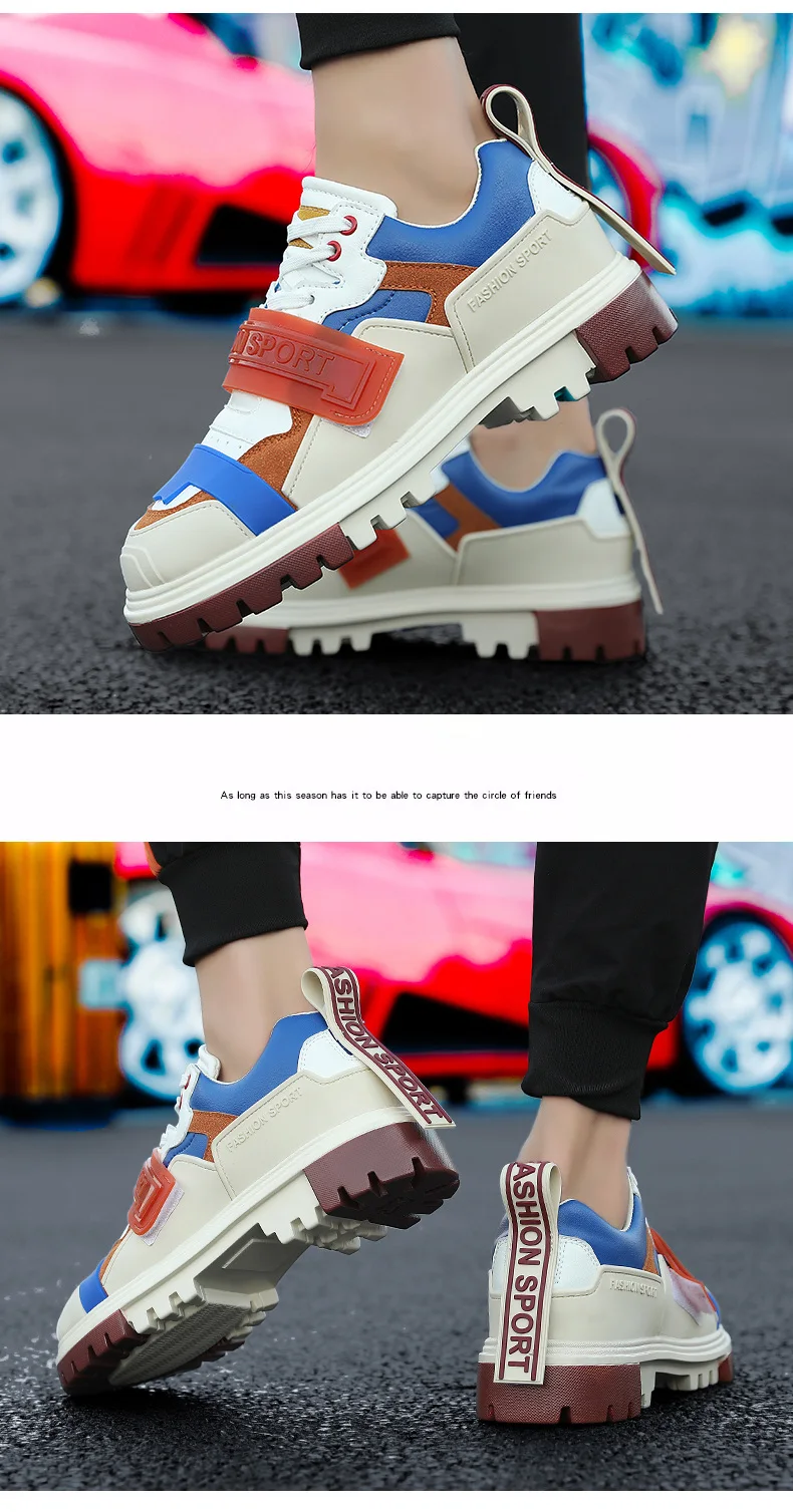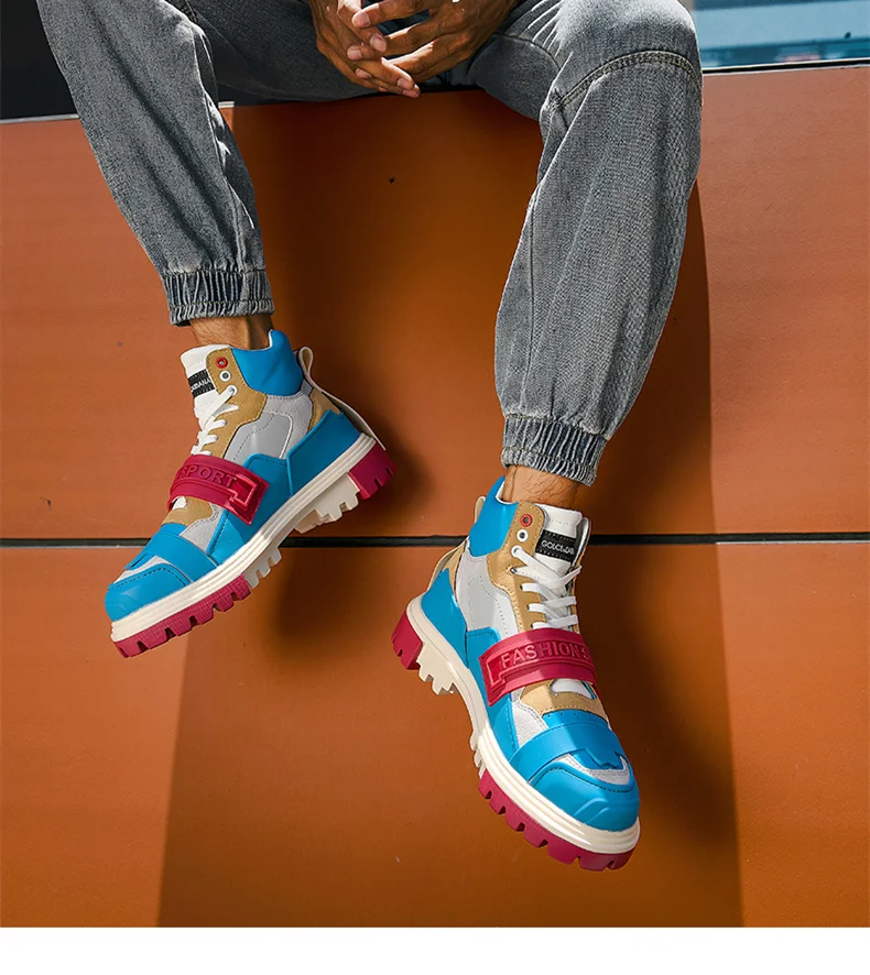 2021 мужские кроссовки модные синие красные осенне-зимние высокие туфли повседневные мужские удобные кожаные кроссовки на высокой платформе Мужские