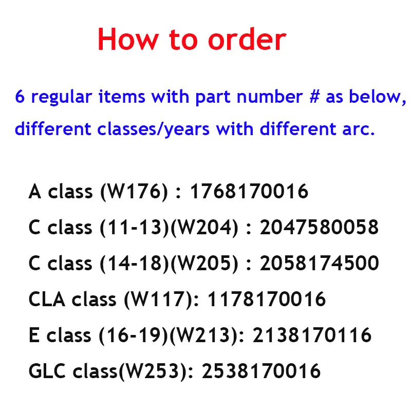 Примечание: у нас есть 6 постоянных товаров с номером # как показано ниже, пожалуйста, проверьте оригинальный номер на вашем автомобиле и выберите правильный, чтобы сделать заказ, различные классы и разные годы разнообразны по дуге. До сих пор у нас есть только 6 ТОВАРОВ: