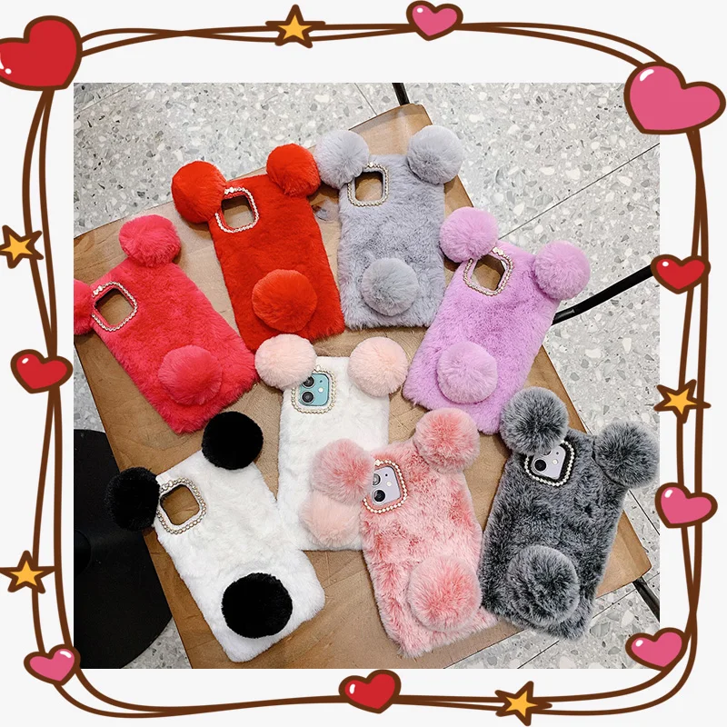 Зимний теплый плюшевый чехол из кроличьего меха для iPhone 13 Pro M...