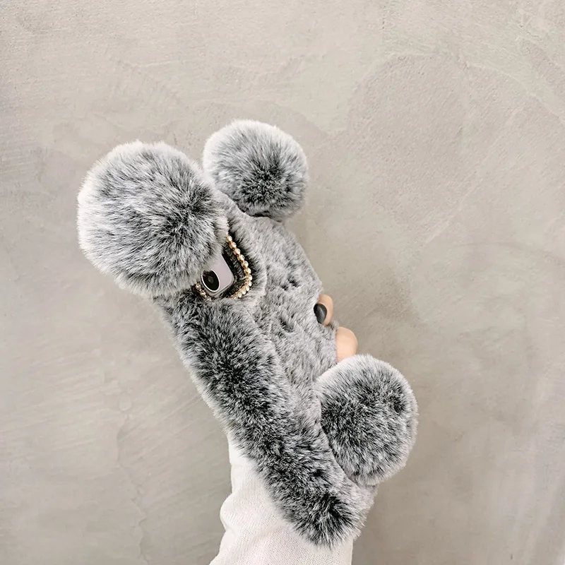 Симпатичный чехол из меха кролика панды для iPhone X XS MAX XR 11 1...