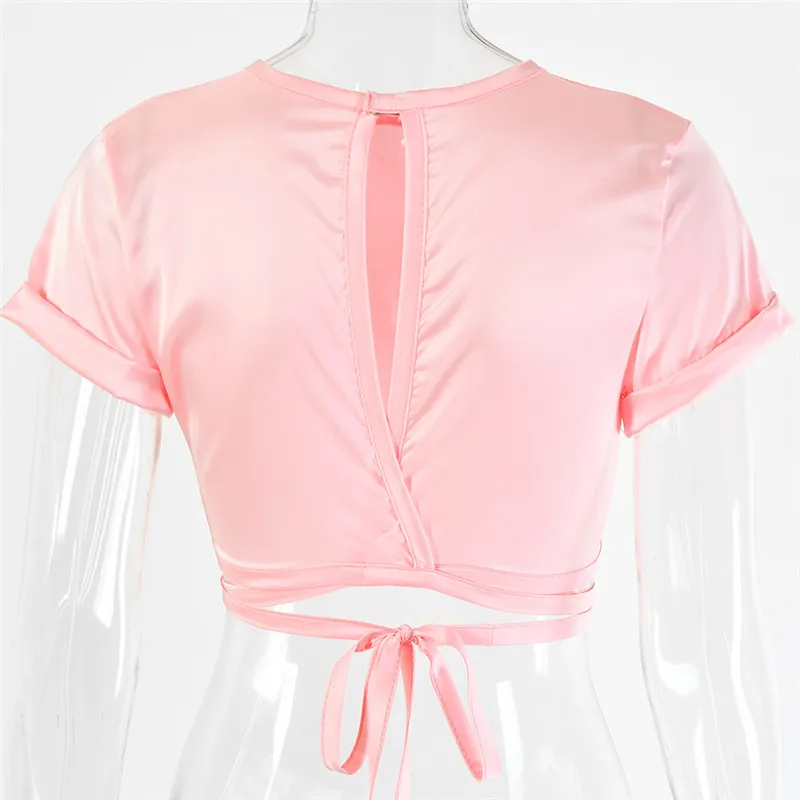 Женский Атласный топ Julissa Mo, с открытой спиной и круглым вырезом, летний, розовый, сексуальный, 2020