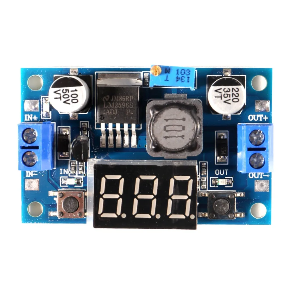 DC-DC LM2596 LM2596S 4-35V Регулируемый понижающий модуль питания DC В DC 3A Макс выход 1,23 V-30V регулируемое питание модульОсобенности:1. ДиапазонВходное напряжение: от 4 В до 35 В постоянного тока(Входное напряжение должно быть выше, чем в выходное напряжение зарядного устройства 1,5 V выше. Не может бустер)2. ДиапазонВыходное напряжение: 1,23 В постоянного тока до 30 в Регулируемое напряжение,Высокая эффективность (92%) наибольший Максимальный выходной ток-3A.