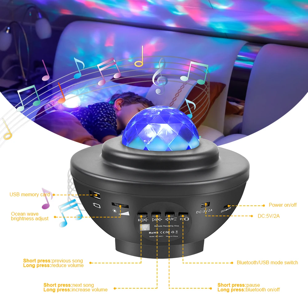 Галактический проектор Звездная Ночная лампа Светодиодная звезда Свет Проекторы Луна лампы Bluetooth музыкальный плеер USB Голосовое управление романтический подарок