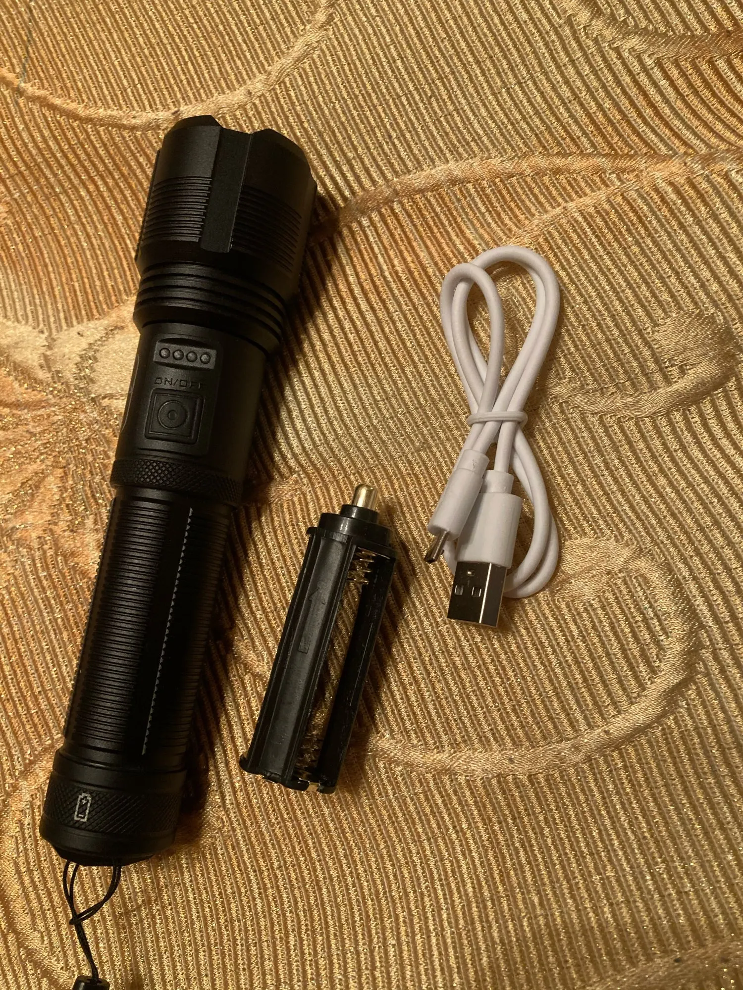 Ładnie świeci, elementy dobrze spasowane, zaślepki i uszczelki w porządku. regulacja skupienia wiązki działa jak należy. Baterie i akumulator widoczne na zdjęciach to osobny zakup.