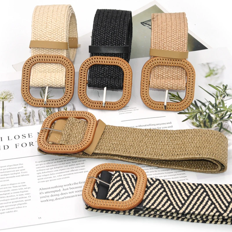 Ремень женский трикотажный с квадратной пряжкой, 1 шт., веревочный Плетеный