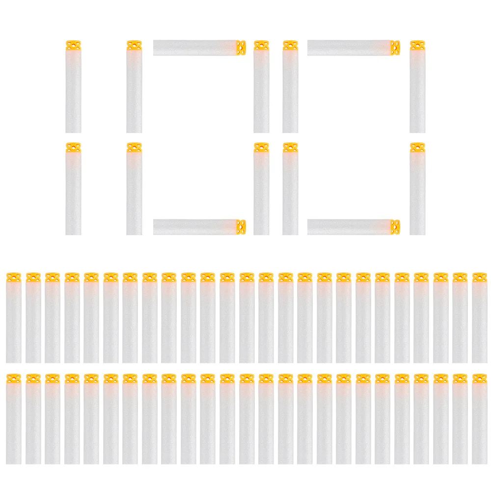 100% Новые пули для игрушечной винтовки в качестве рождественского подарка для детейМатериал: ЭВАТип: пули для игрушечного пистолета EVA с плоской мягкой головкой (пуля с отверстием).Размер: 7,2*1,3 смКоличество: 100 шт./упак.Цвет:Белый (светящийся)Посылка:100 шт полые отверстия головы игрушки пополнения Дартс пули для Nerf