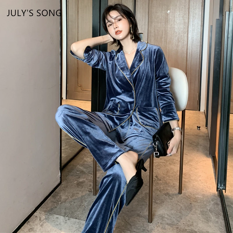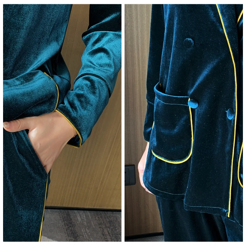 Пижама женская, осенняя, повседневная, золотистая, бархатная