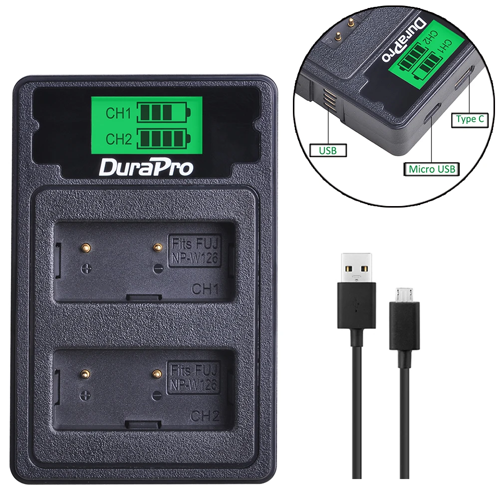 Особенности зарядного устройства:Предназначен для батареи Fujifilm NP-W126Заряжайте 1 или 2 аккумулятора одновременно и независимо.С ЖК-индикаторами для отображения состояния каждого аккумулятора.С кабелем micro USB для удобной зарядки.Контроль постоянного тока для предотвращения перенапряжения, перезарядки, короткого замыкания.Функция плавного запуска во избежание повреждения от большого тока заряда во время зарядки.Идеально подходит для путешествий и домашнего использования, портативный и удобный для переноски.