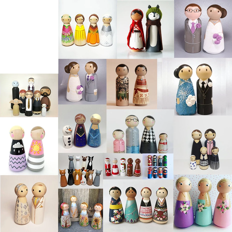 Куклы-Колышки из твердой древесины, 6 шт.лот, незавершенные, для де...