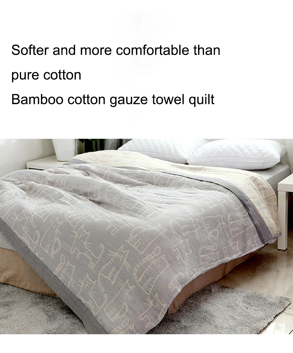 Летнее одеяло из бамбукового хлопка и муслина, покрывало для кровати, для дивана размера QueenKing, дышащее дорожное мягкое теплое покрывало с мультяшным котом из ниток