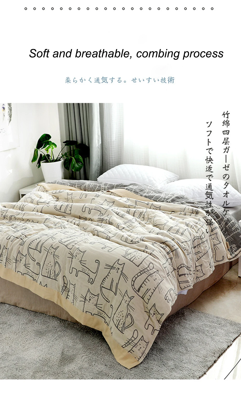 Муслиновое одеяло, 4-слойное дышащее одеяло из натурального бамбука...