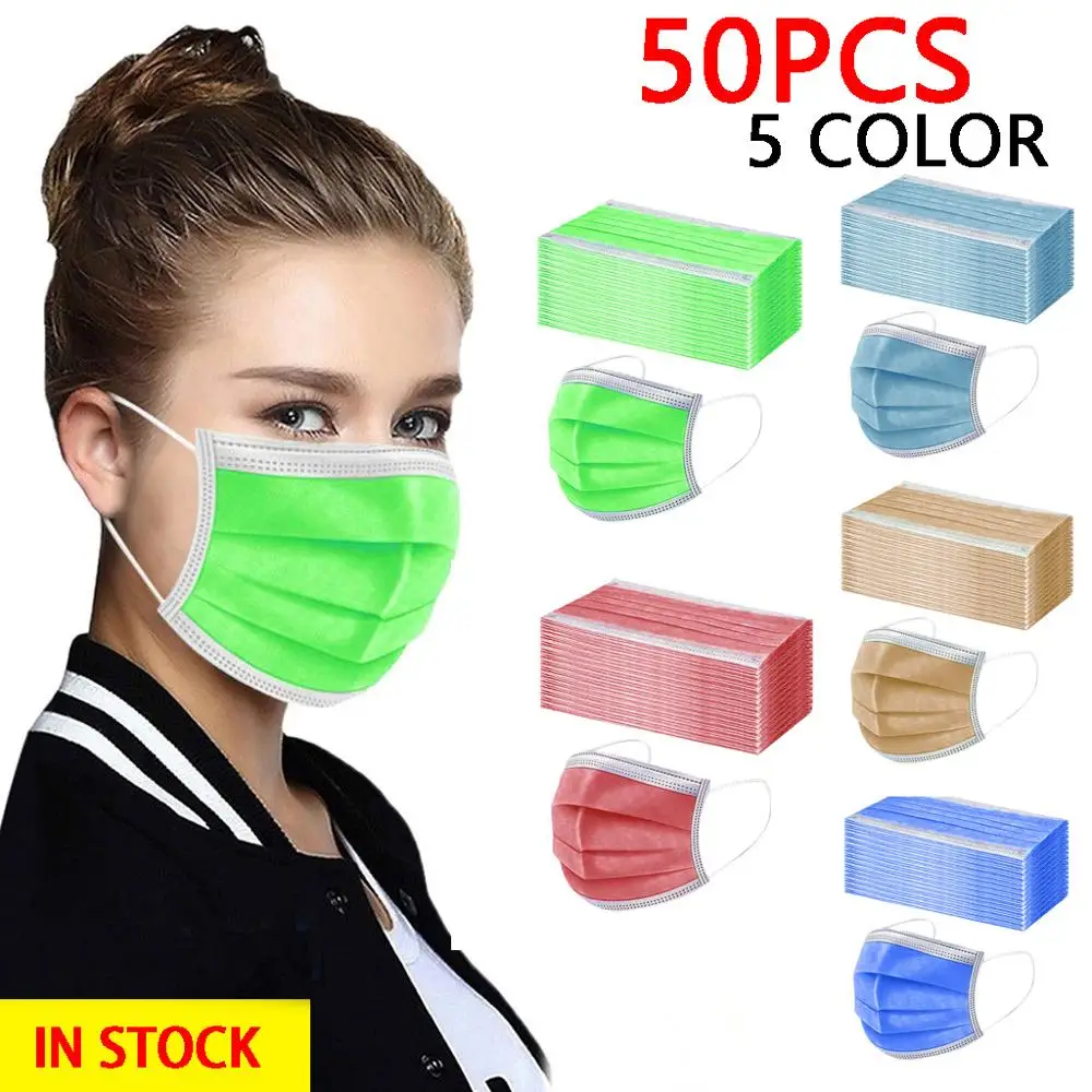 Зеленая одноразовая маска для лица, 50 шт., 3-слойная многоразовая ...