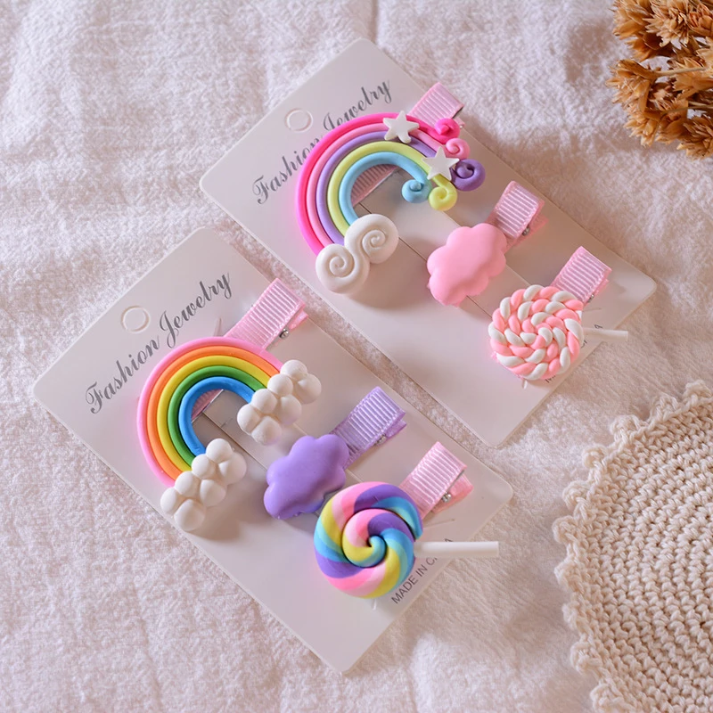 3 шт., детские заколки для волос с радужным леденцом, заколки для волос для маленьких девочек, аксессуары для волос, заколки для волос, Детские милые модные заколки BB