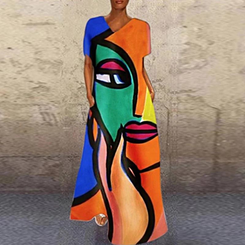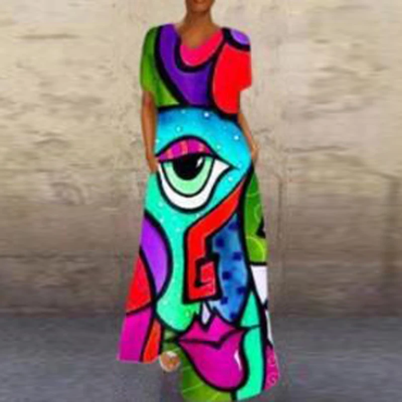 Платье женское длинное с абстрактным принтом, свободное Макси-плать...