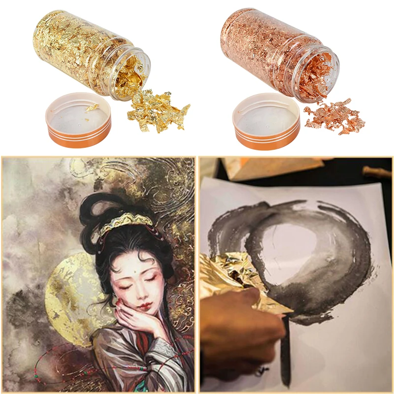 1 шт., имитация золота, серебра, меди, листья, хлопья, фрагменты, DIY 3D наклейка для ногтей, чешуйчатая живопись, инструмент для выпечки, украшение