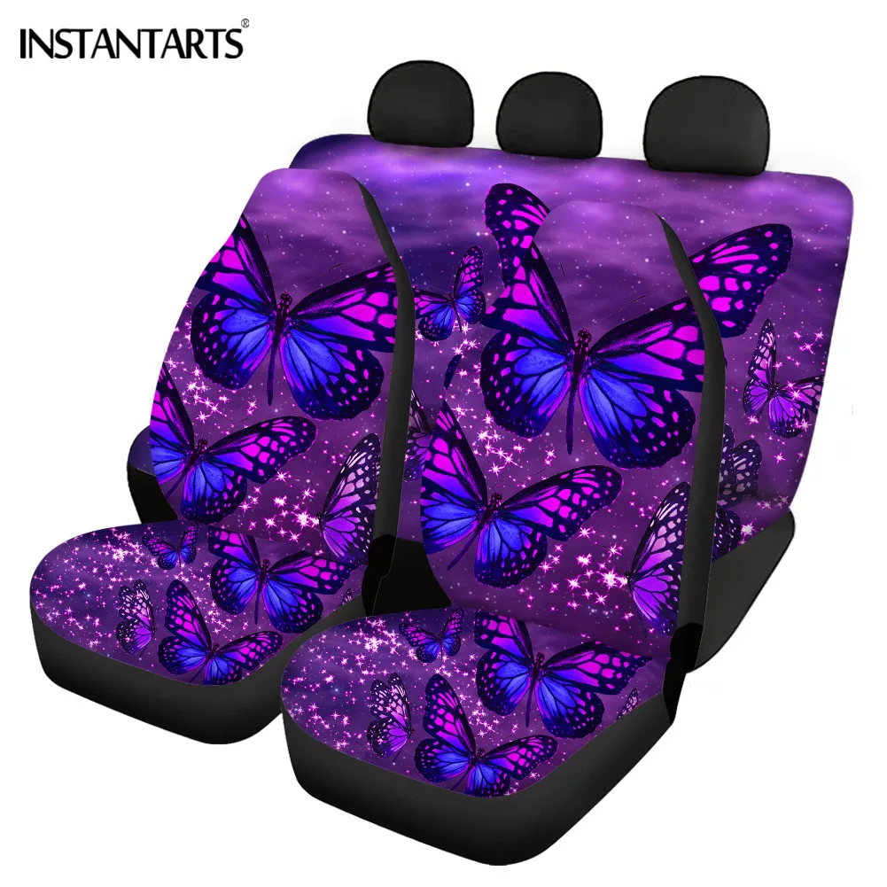 INSTANTARTS 4 шт. Чехлы для автомобильных сидений подходят для большинства автомобилей грузовиковвнедорожников фиолетовая бабочка симпатичный узор универсальные автомобильные аксессуары для интерьера мягкие