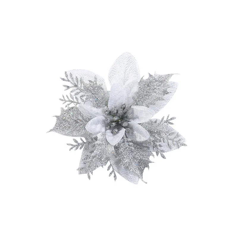 Искусственные Рождественские цветы, блестящие искусственные цветы, ...