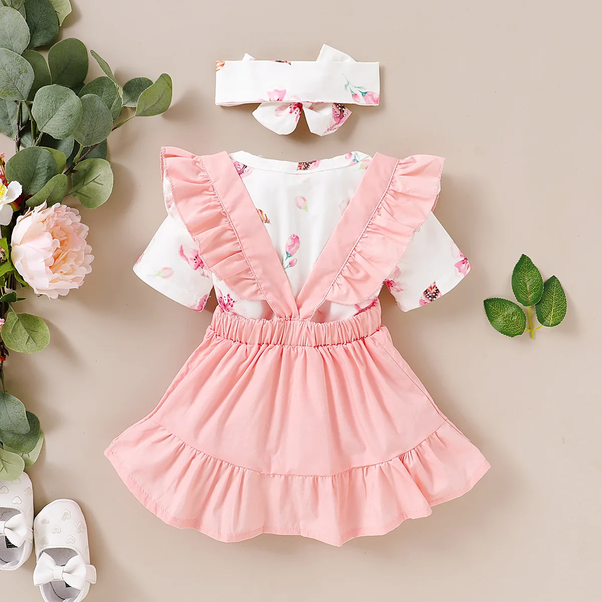 Комплект из юбки и повязки на голову для новорожденных девочек, модный однотонный комбинезон с цветочным принтом и коротким рукавом, комплект из 3 предметов
