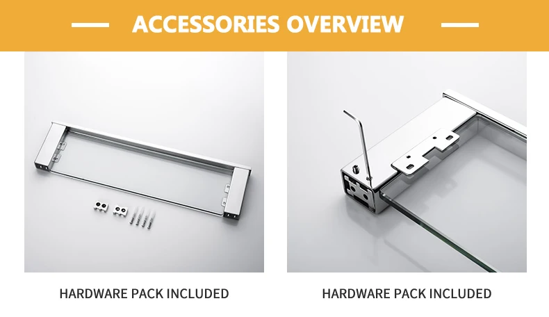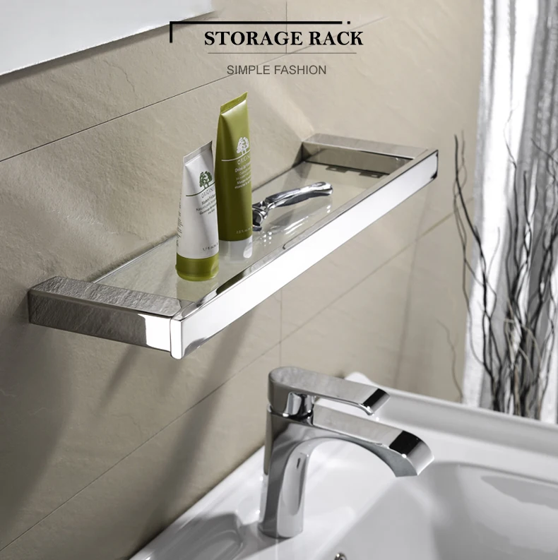 Особенности и характеристики:Держатели для шампуня для ванной комнаты/стеклянная полка/стеллаж для храненияМатериал: нержавеющая сталь SUS 304Использование: ванная комната/душевая комната/туалет/кухня/туалетТип: аксессуары для ванной комнатыУстановка: НастенныйЦвет: хромВключая все монтажные фитинги