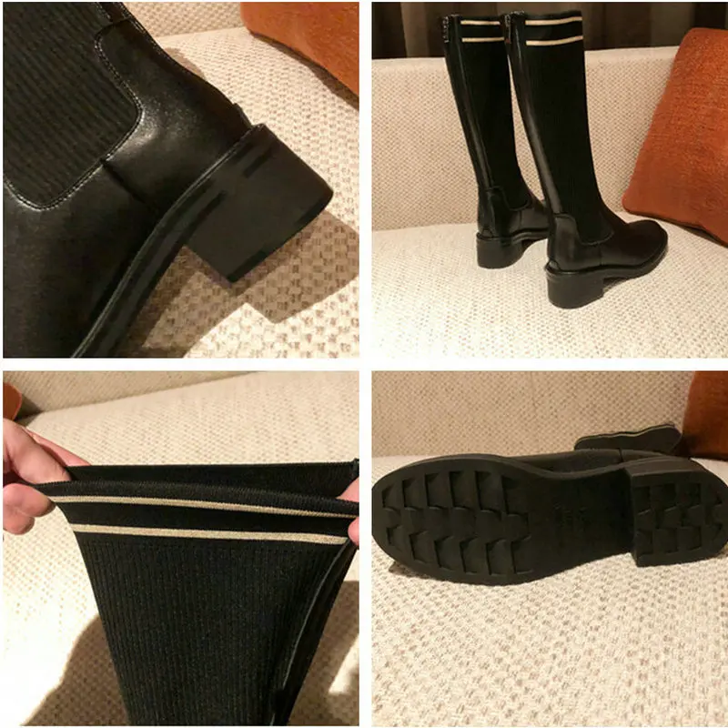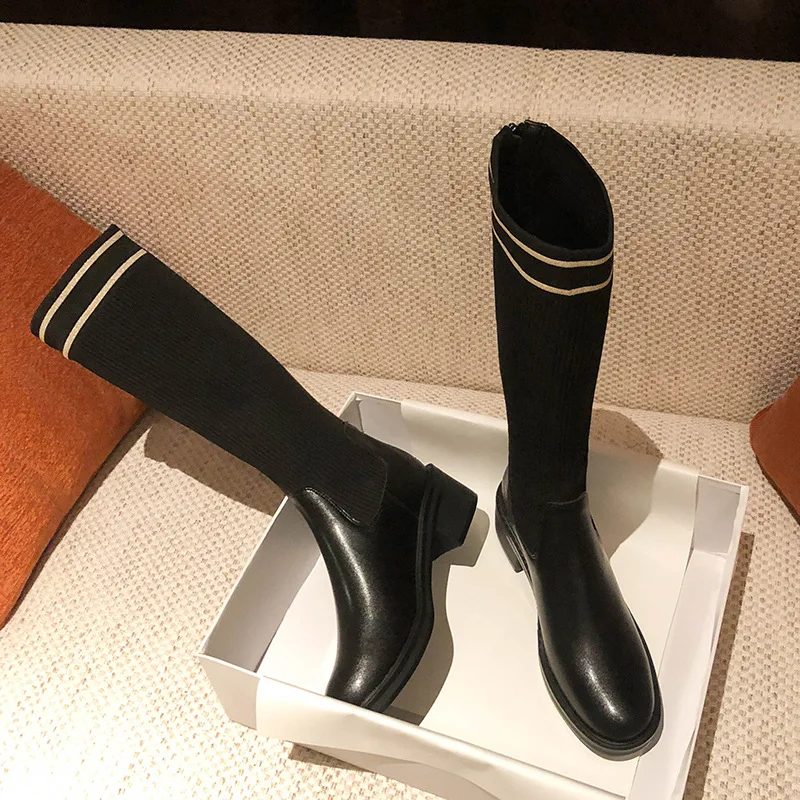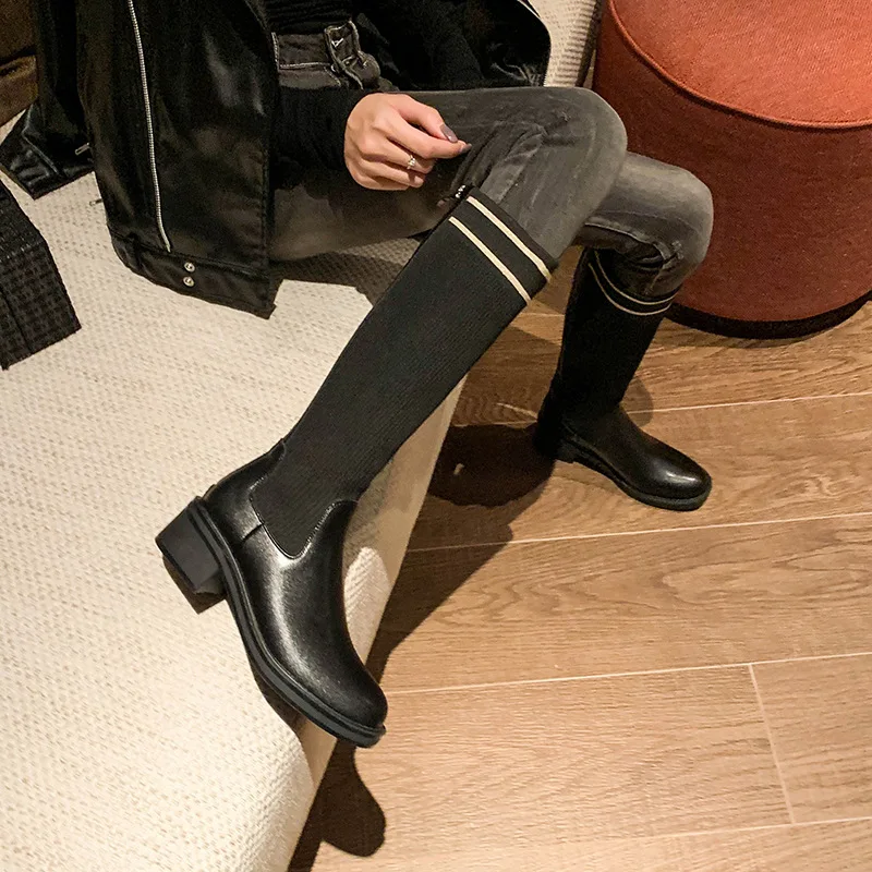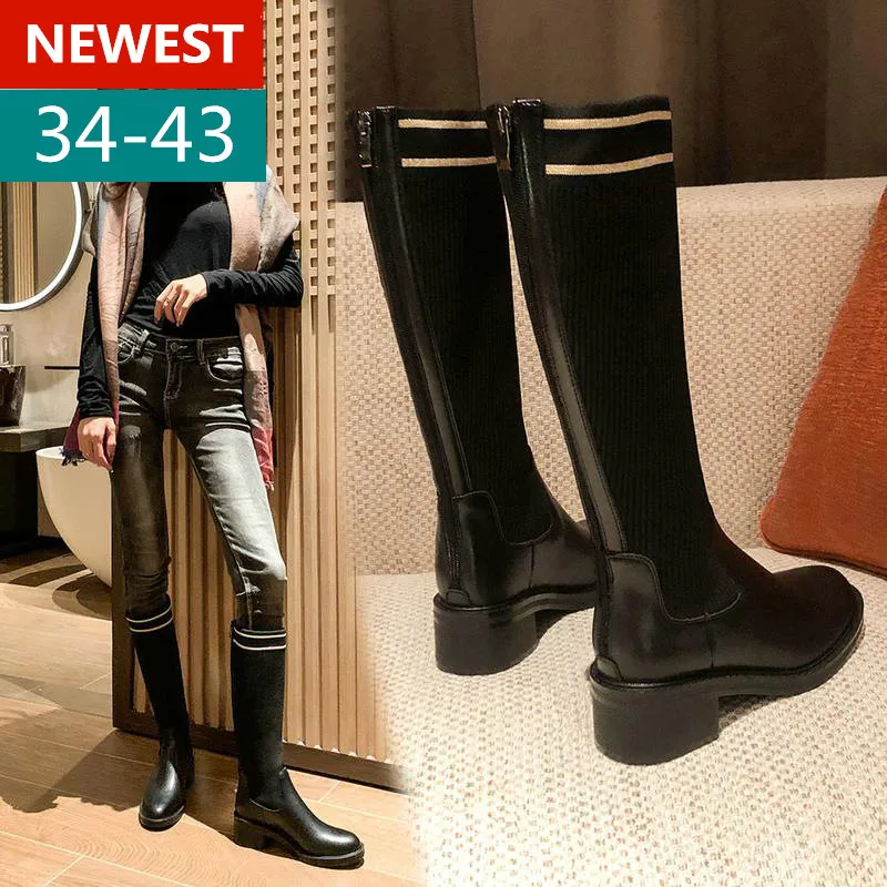 Ботинки женские на толстом каблуке, универсальные эластичные длинные на молнии, большие размеры 34-43, Осень-зима 2022