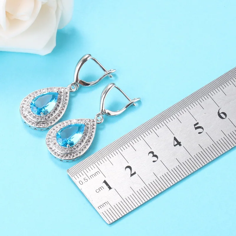 Свадебные серебряные 925 Свадебные аксессуары женские синие кубичес...