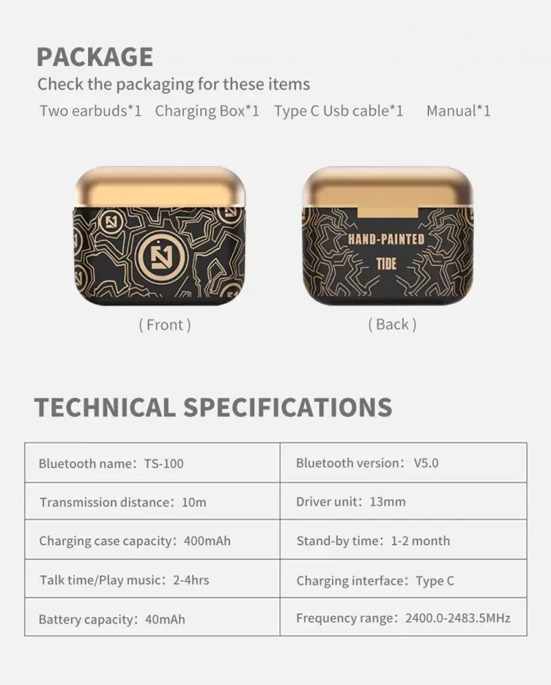 Последняя TWS бинауральная стерео Bluetooth гарнитура с чипом 5,0 дает вам очень эффективную беспроводную производительность.