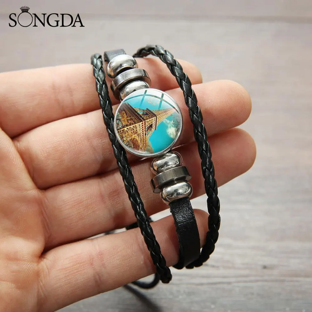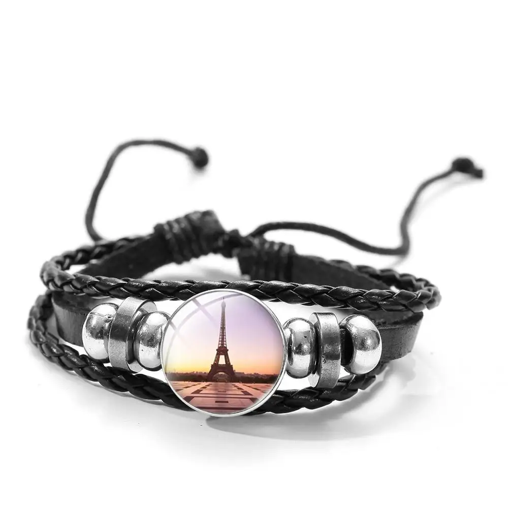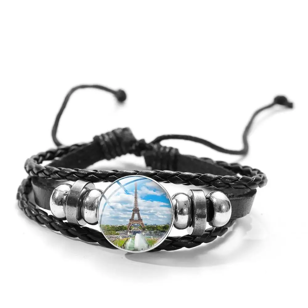 Французский Landmark с Эйфелевой башней и кожаным ремешком браслеты с мультяшным принтом стеклянный купол Пряжка многослойный браслет сувенир подарки для туристов