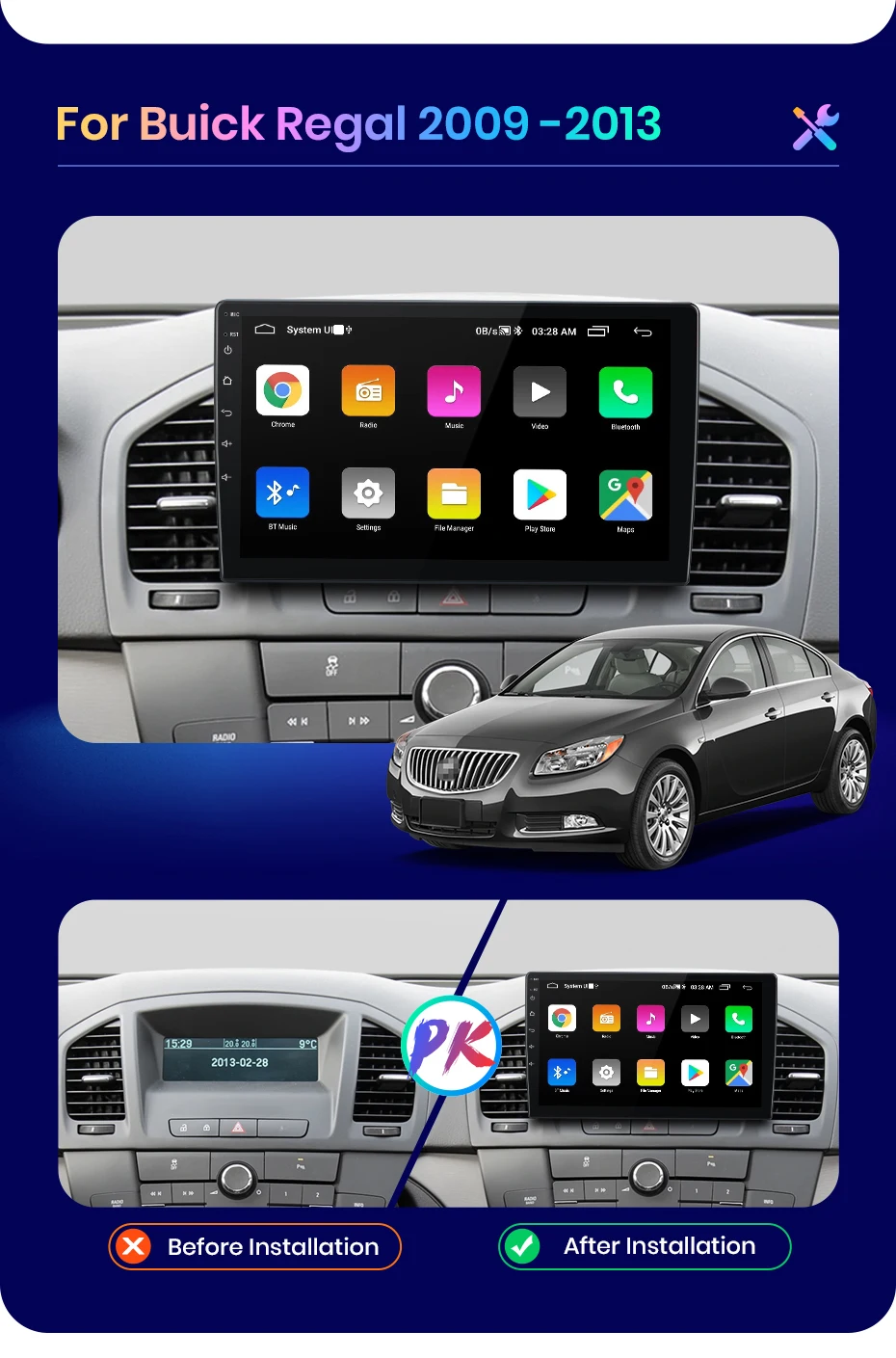 Автомагнитола AWESAFE PX9 для Buick Regal, мультимедийный видеоплеер на Android, без DVD, с GPS, для Buick Regal, 2009, 2010, 2011, 2012, 2013, типоразмер 2 din