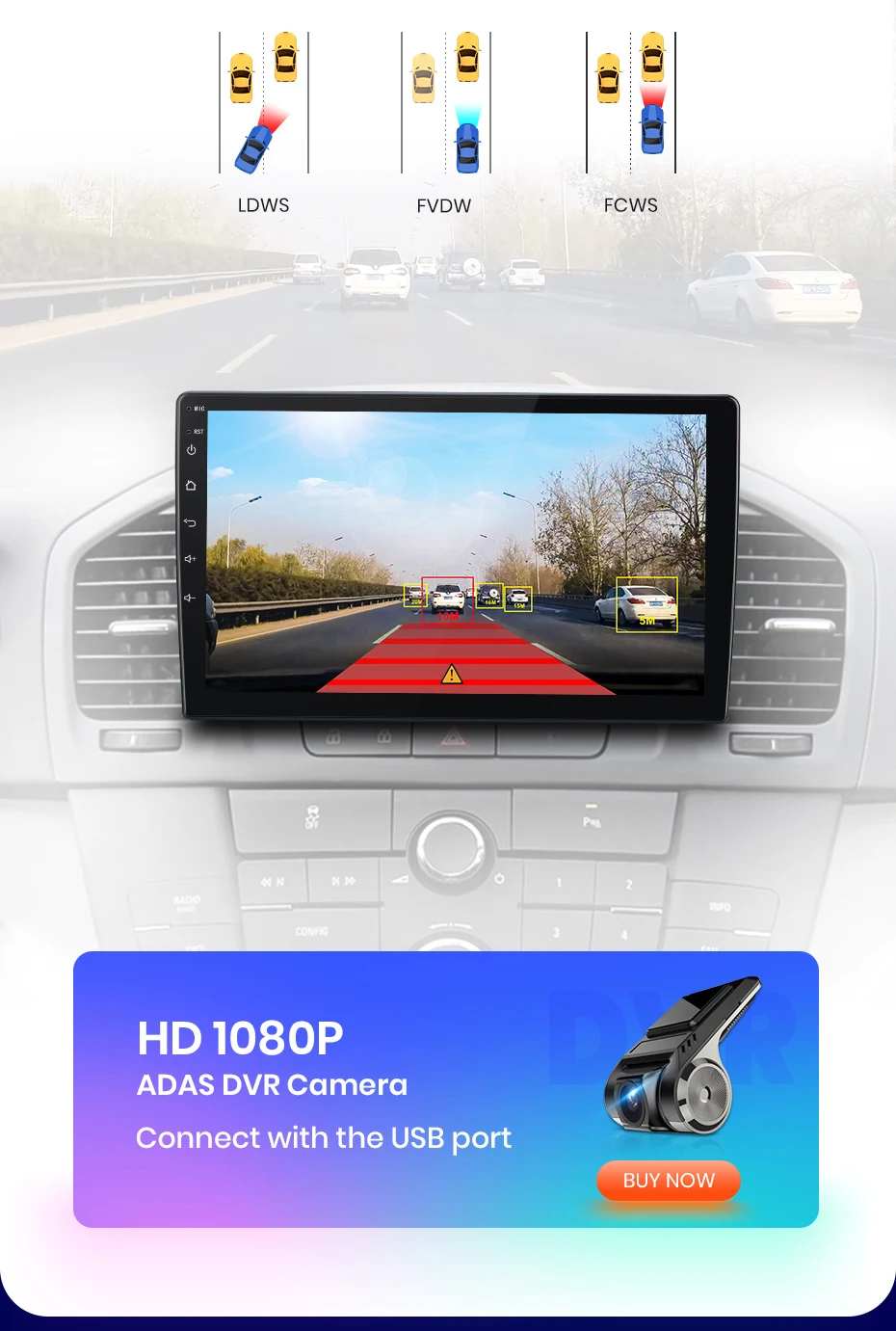Когда автомобильное радио подключено к ADAS video recorder, это сделает передовую систему помощи при вождении, И предупредит вас, если ваш автомобиль слишком близко к переднему автомобилю или если ваш автомобиль отклоняется от полосы движения, чтобы помочь вашему вождению безопаснее и проще.