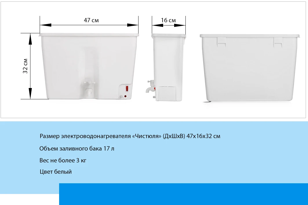 Характеристики водонагревателя «Чистюля», 17 л: