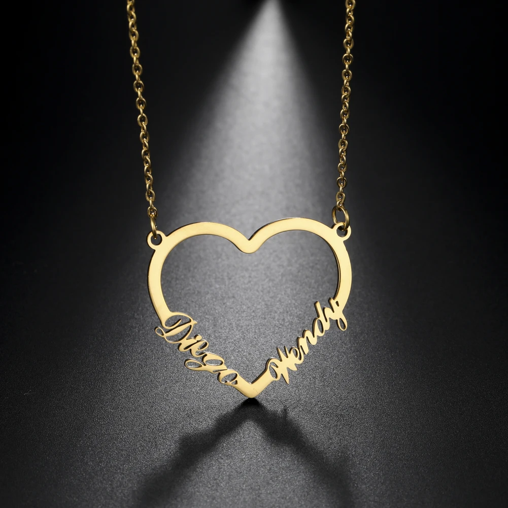 Ожерелье с именем на заказ в форме сердца, подвеска с именной табличкой из нержавеющей стали, персонализированные ожерелья на заказ, ювелирные изделия, подарок для женщин и девушек